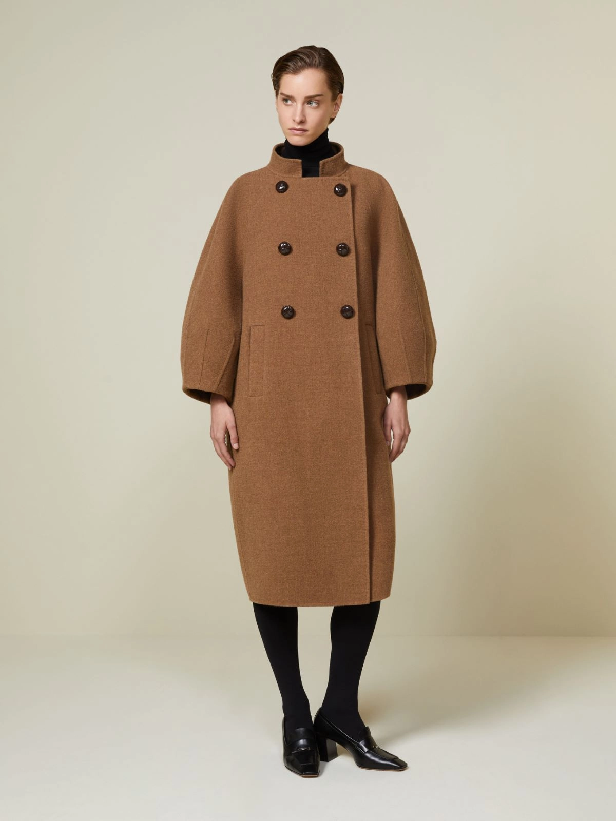Płaszcz Couture z dwuwarstwowej wełny - Wielbłądzi