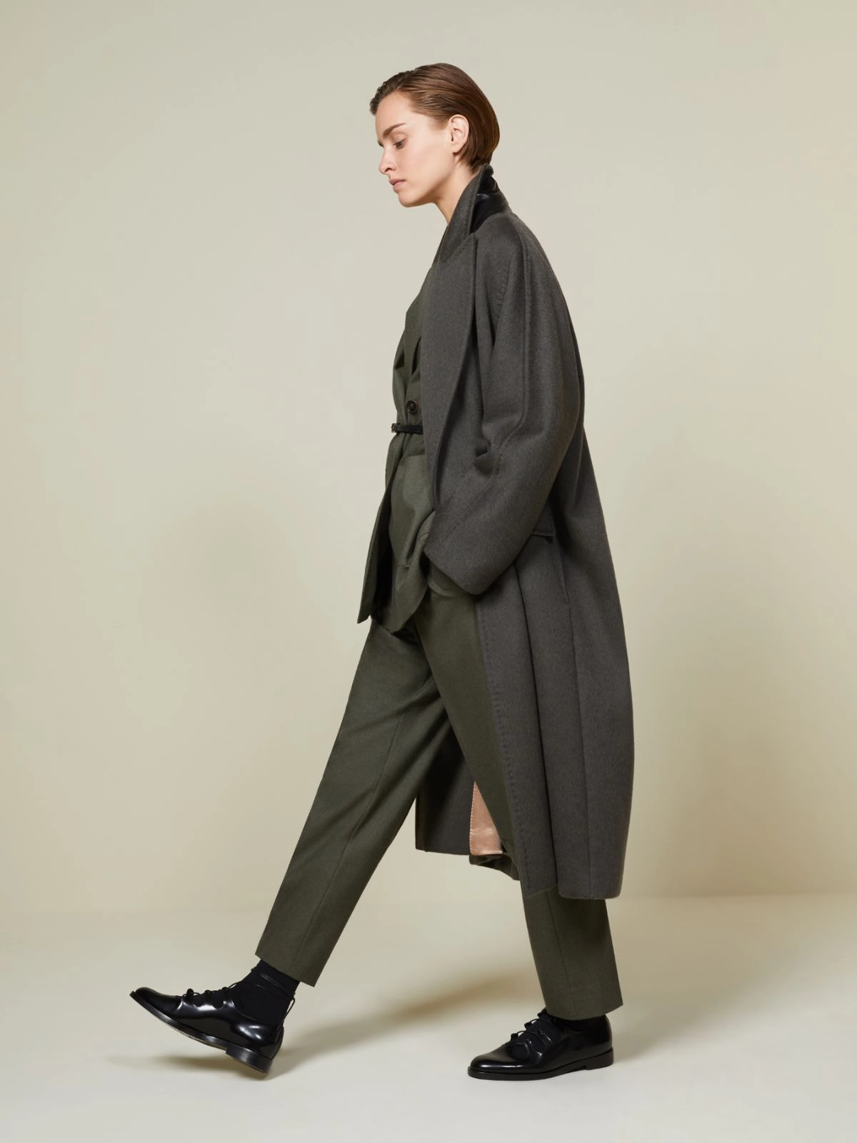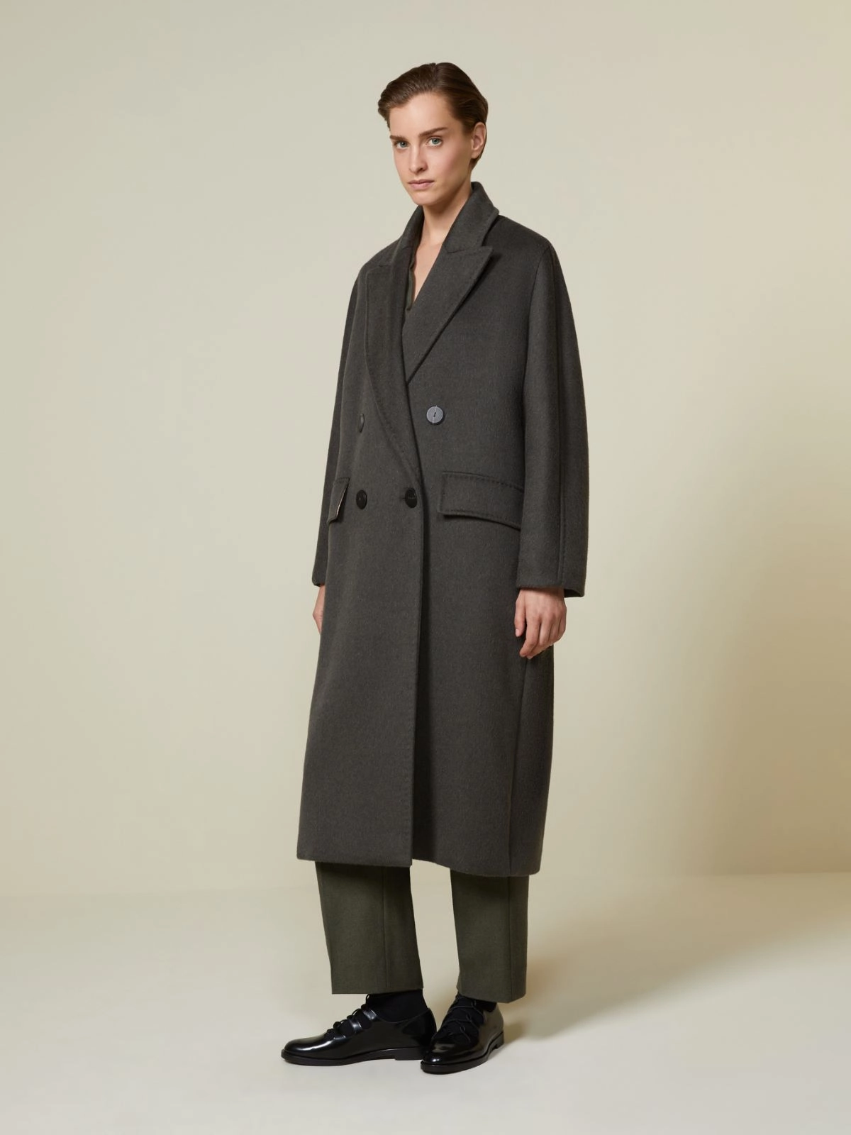 Płaszcz oversize w stylu męskim z kaszmiru, alpaki i wełny - Ciemnozielony