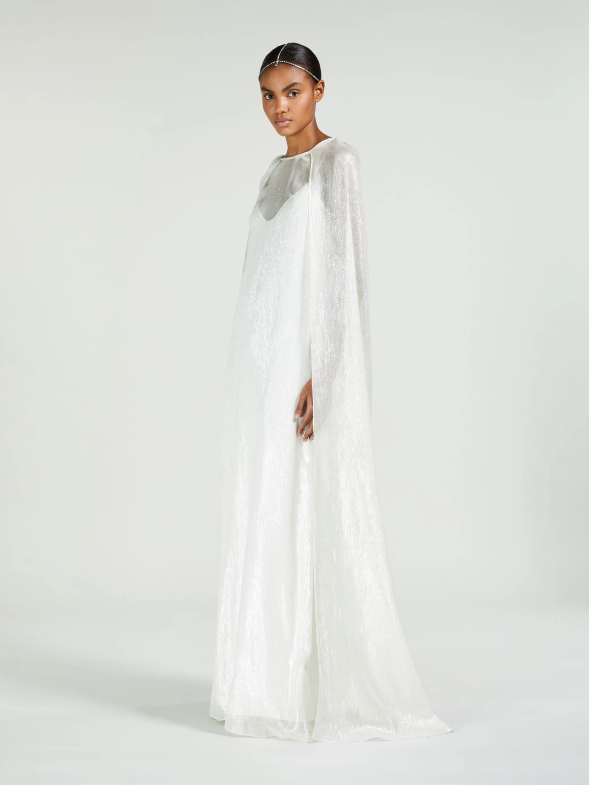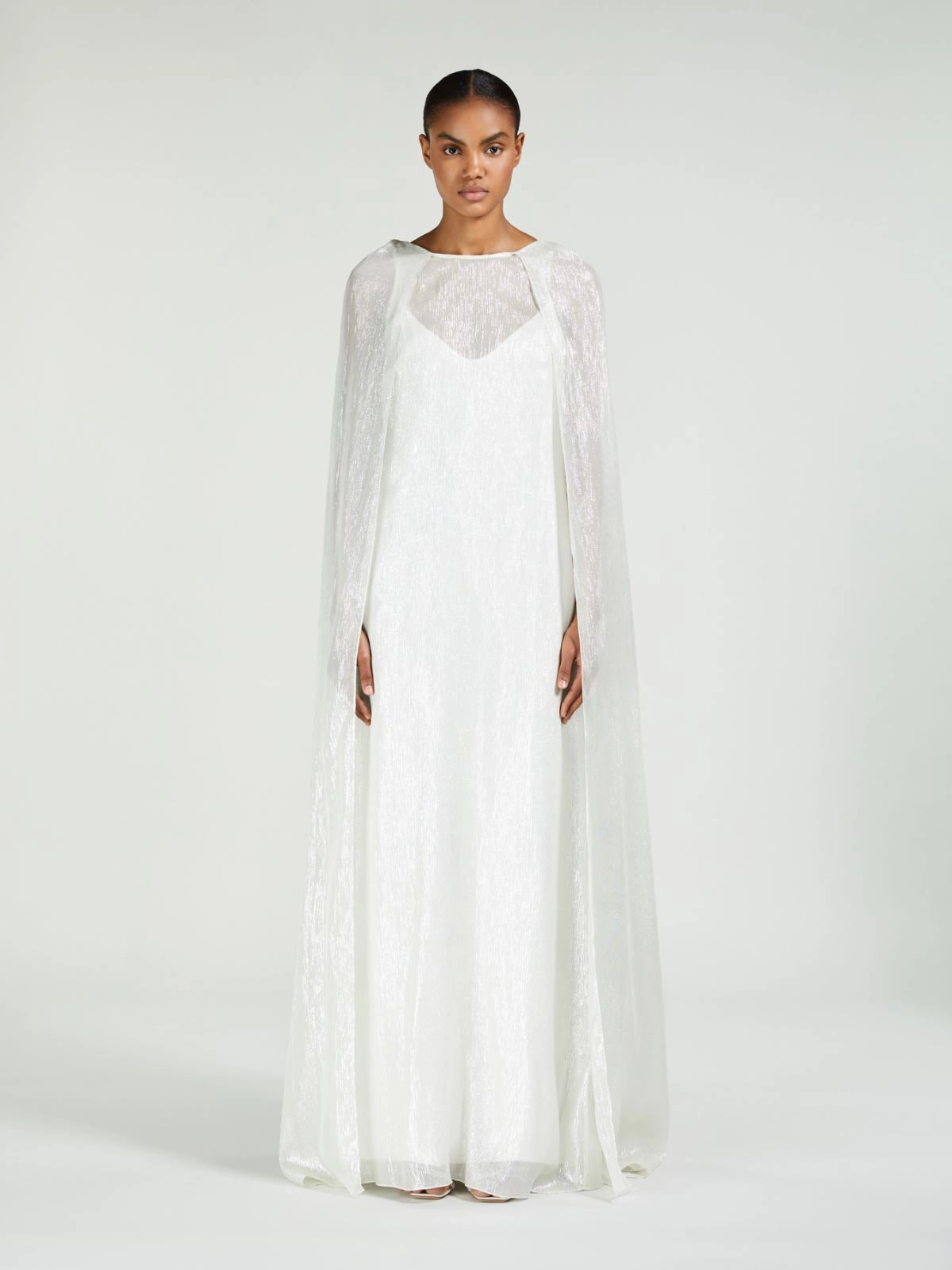 Sukienka 76% jedwab, 24% włókno metaliczne. Spódnica halkowa tkanina 85% octan, 10% jedwab, 5% poliamid; podszewka 85% octan, 10% jedwab, 5% poliamid.