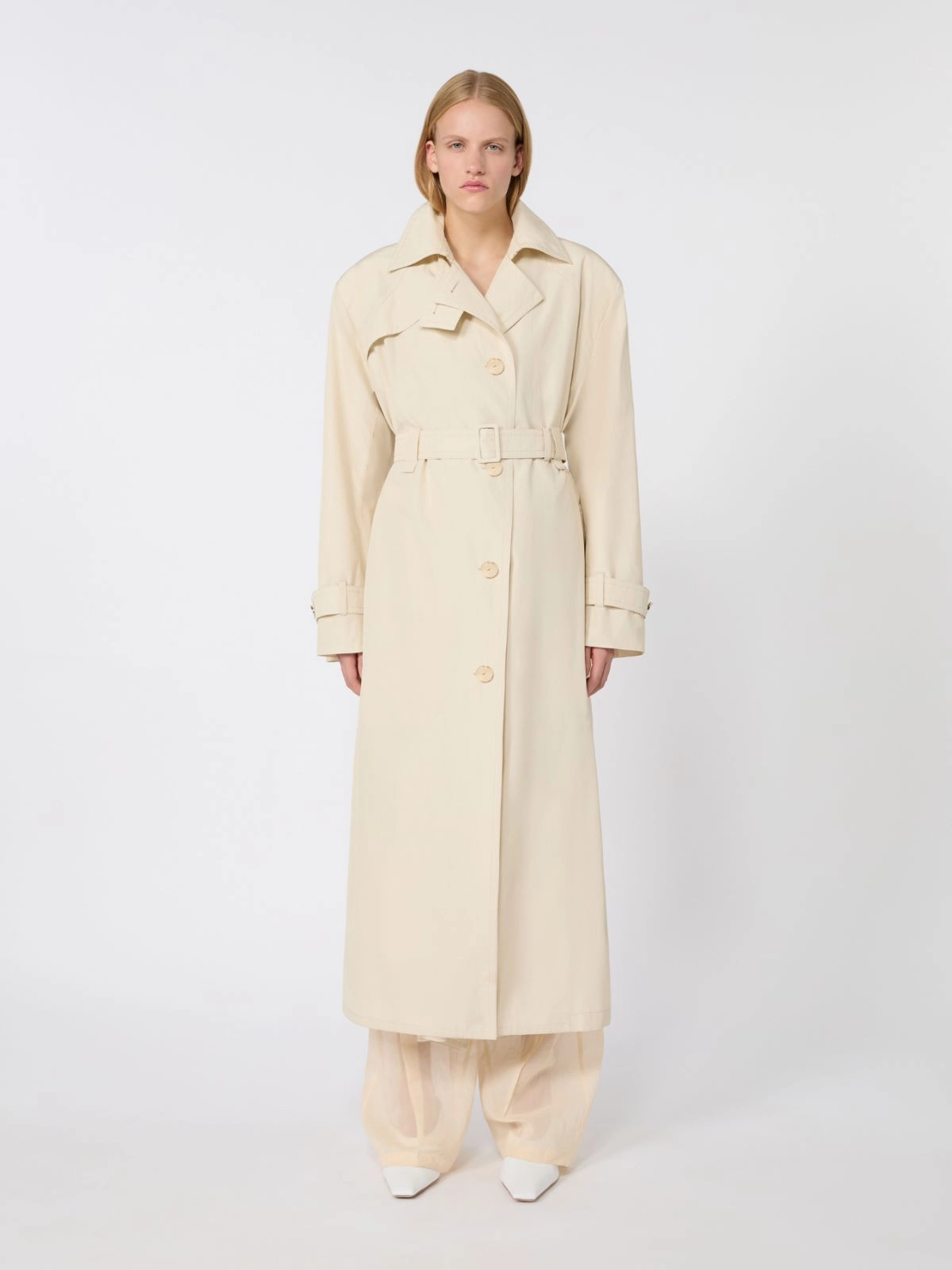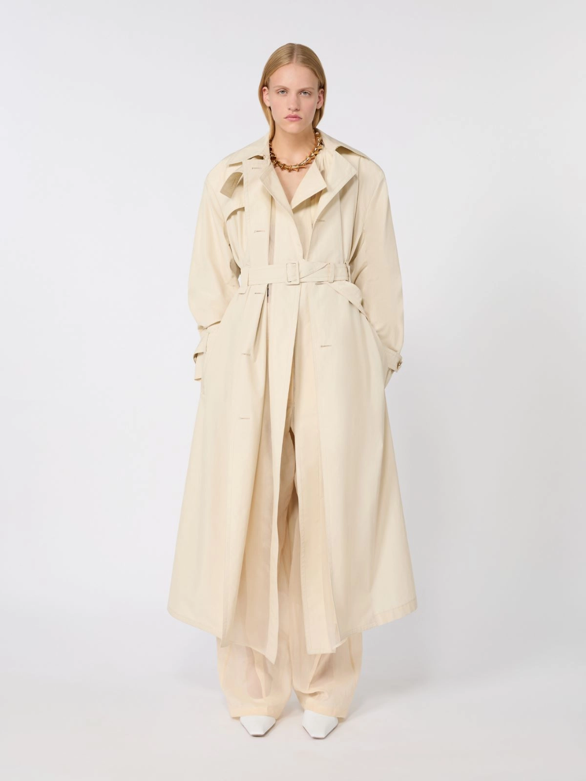 - Wodoodporny trencz z cupro i bawełny z detalami z jedwabnej organzy