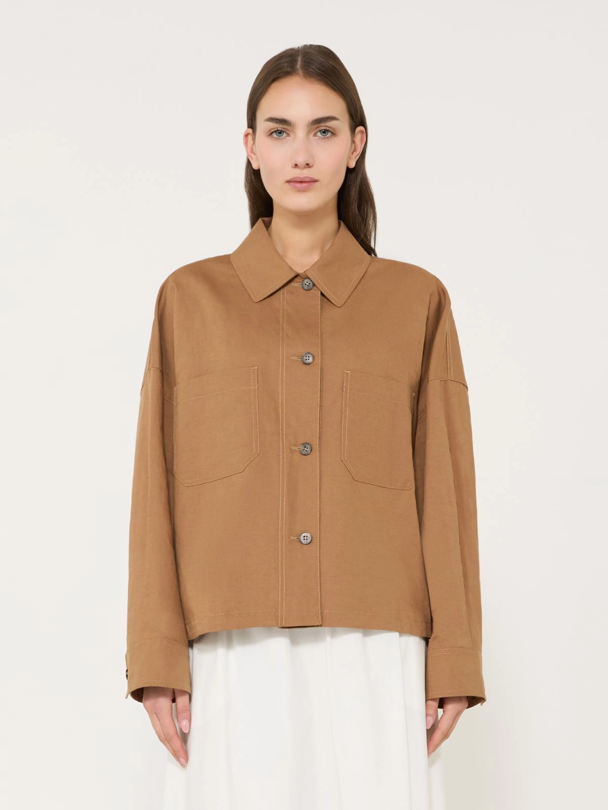 Jednorzędowa kurtka charakteryzująca się obszernym fasonem z regulowanym troczkiem w talii z tyłu.