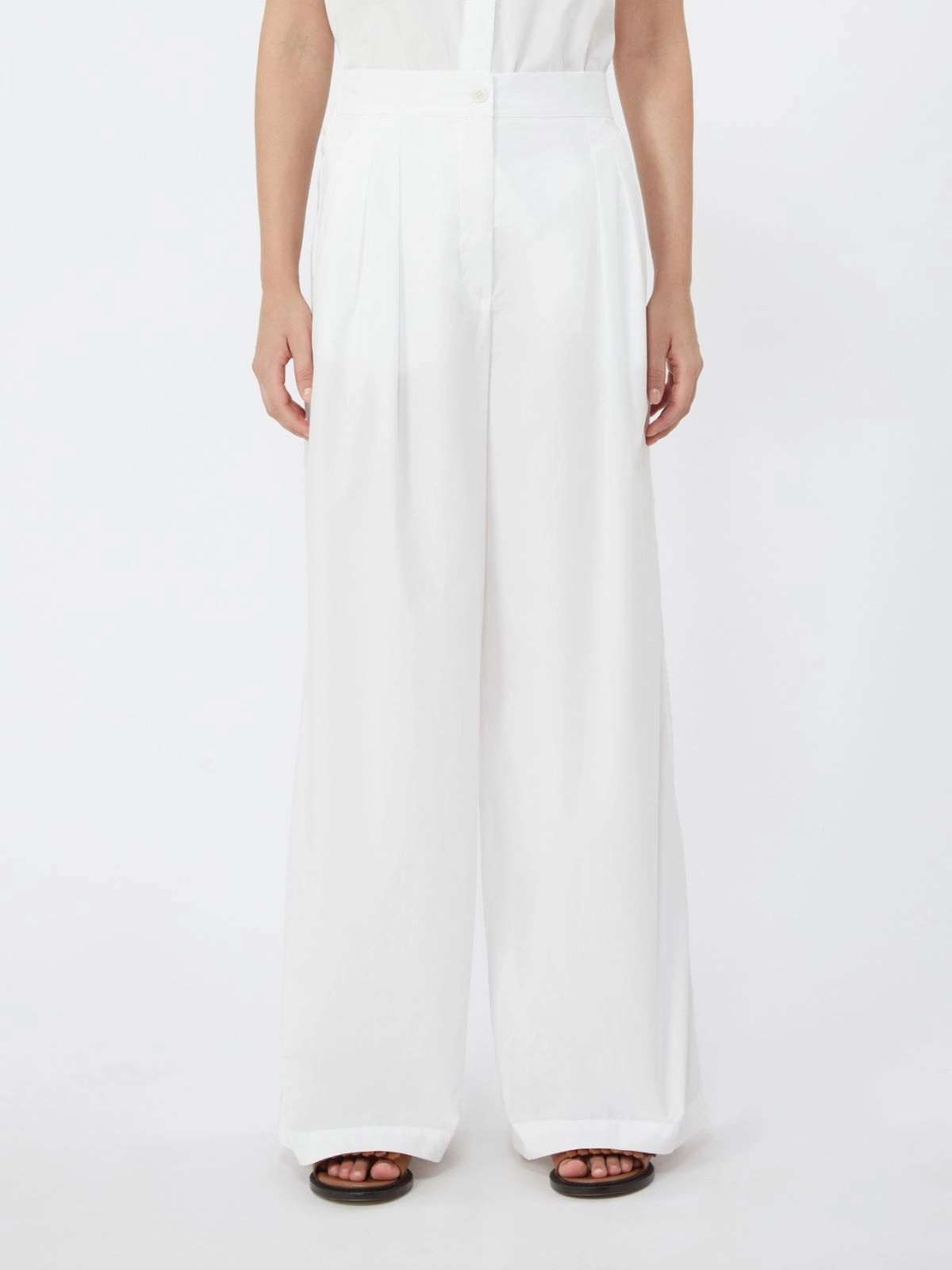 Szerokie spodnie z popeliny bawełnianej - Biały