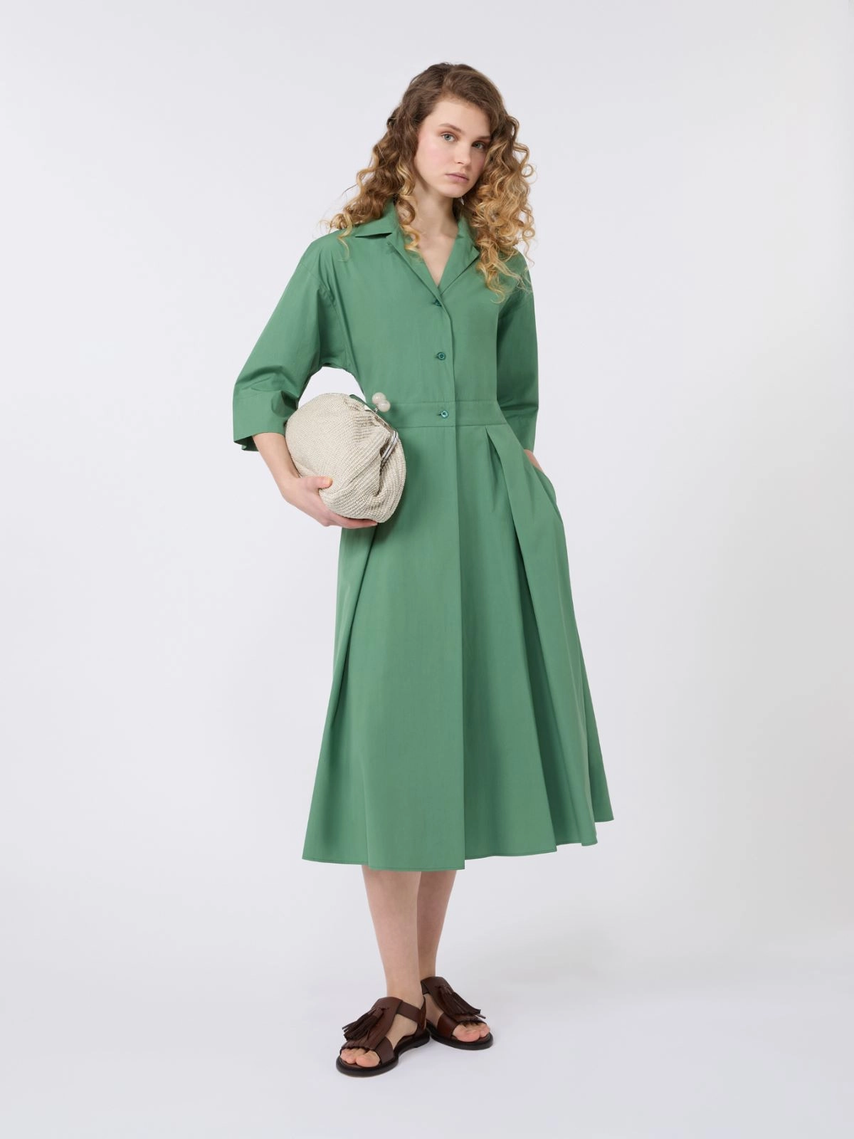 Szmizjerka midi z popeliny bawełnianej + ZIELONY - Max Mara