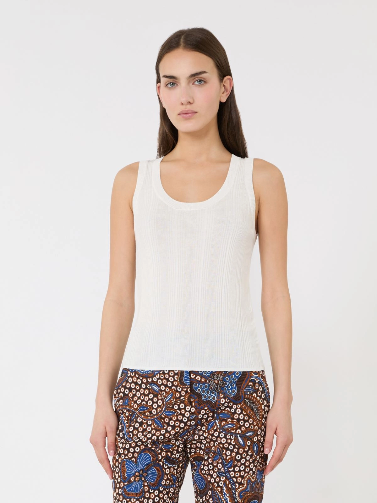 Top bez rękawów o dopasowanym kroju wykończony nieregularnym prążkowanym splotem.